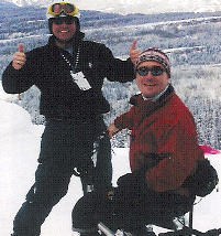Before Justin Deboer discovered that he had MS, he was living an active life, riding motorcycles, playing sports, and had two kids in junior high. Now his legs had no stamina, his balance was shot, and he fell on easy slopes and in the lift lines. When his family announced a ski trip last year, Justin had given up skiing. Then he heard about the adaptive ski program at Vail that used the ski-bike as an adaptive device. The ski-bike looks like a mountain bike, but substitutes short skis where the wheels should be. Wearing short skis on their feet, riders have three points of contact with the snow, improving balance and virtually eliminating falls. The forces of skiing are transferred through the device, making skiing a lot less fatiguing. In December, Justin and his brother bought two K2 ski-bikes and headed to the mountains for a trial. Within three days, he found that the ski-bike was the perfect adaptive device for him, bridging the gap between stand skiing and mono skiing. The ski-bike's low center of gravity and multiple points of contact with the snow make it particularly stable and easy to learn. Candidates for using the ski-bike as an adaptive device have good balance but may have difficulty standing and skiing due to pain, fatigue, or lack of muscular strength. Adaptively, the ski-bike is particularly useful because the forces of skiing are transmitted through the bike frame directly to the trunk, avoiding stress to the legs and decreasing pain or fatigue. From an instructor's point of view, teaching on the ski-bike is very similar to other adaptive devices. Ruth DeMuth, program supervisor of the Vail Adaptive Program, says " If you are an instructor capable of movement analysis, it's easy to pick out movement patterns and apply them to teaching someone to use the ski-bike." Several manufacturers provide instructional materials. K2 and Brenter offer video instruction guides that include lift loading procedures, riding footage and safety tips. Ski-bikes, made by a variety of manufacturers, do not require any change in lift operations, and a leash is not required when riding a ski-bike because in the unlikely event of a fall it will stop immediately, with the handlebars acting much like a ski's snow brake. Not all ski resorts in the US allow the ski-bike for able bodied riders, but most have been willing to allow it by request as an adaptive device for skiers with disabilities. Skiers or instructors looking to use the ski-bike in an adaptive manner should contact the ski area ahead of time. According to Hal O'Leary, founder of the NSCD, "the ski-bike is truly an amazing device that allows persons with a variety of disabilities to access winter recreation in a quick and almost effortless way- it's instant skiing."