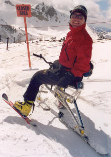 ~~Thank you for leading the way. I read the article in the archives of In Motion magazine and you introduced me to a glorious return to the slopes. It took about an hour to introduce myself to the mechanics of body centering, weight shift and applying edges. I made 8 chair runs the first day. On my second outing I was able to descend a slope that was so steep I returned to that "on-the-edge" thrill that was absent for 25 years. Your example and encouragement is prompting me to introduce this sport to our amputee community in the area. I am a volunteer activist in our area. Unfortunately, amputees sometimes fold within themselves and accept restrictions on their body use. Some amputee pals snow ski and I admire their courage and grit.