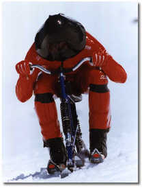 But, this is just the beginning, according to Mr. Bonvin. A new bike is in development which should enable him to break the record yet again. It is being designed by the School of Engineering-University of Geneva in collaboration with various industrial sponsors for materials, including Dynastar and Rossignol, as ski providers. More details, with photos, follow below.