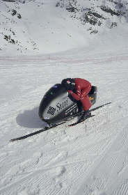 On March 22, 2000, during the world championship of speed skiing held on the olympic track of the Arcs, he broke the official world skibob speed record, gliding at 184.9 kph (114 mph). He broke the record of 173 kph (107 mph) set in May 1999 by..... Romuald Bonvin. These records were set using a bike built by Flachsmann Switzerland.