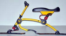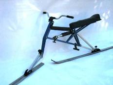 Features..... Collapsible for transport, adjustable: height, seat position, handlebars, suspension, skis, pegs