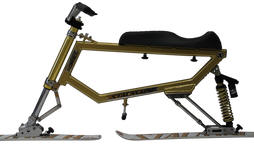 Features..... Collapsible for transport, adjustable: height, seat position, handlebars, suspension, skis, pegs. Upside down fork.